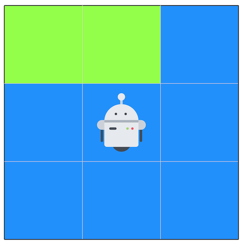 - ロボットは、内部状態を表す変数を1つ持ち、現在のマスの色cと内部状態qから次の行動(A(c,q),S(c,q),D(c,q))を決定する